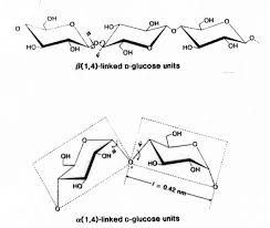 Starches are glucose polymers in which glucopyranose units are bonded by alpha-linkages. It is made up of a mixture of Amylose (15–20%) and Amylopectin (80–85%). Amylose consists of a linear chain of several hundred glucose molecules and Amylopectin is a branched molecule made of several thousand glucose units (every chain of 24–30 glucose units is one unit of Amylopectin). Starches are insoluble in water. They can be digested by hydrolysis, catalyzed by enzymes called amylases, which can break the alpha-linkages (glycosidic bonds). Humans and other animals have amylases, so they can digest starches. Potato, rice, wheat, and maize are major sources of starch in the human diet. The formations of starches are the ways that plants store glucose.PDs: degree of polymerizations: is usually defined as the number of monomeric units